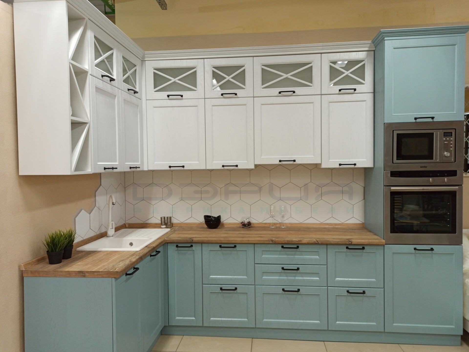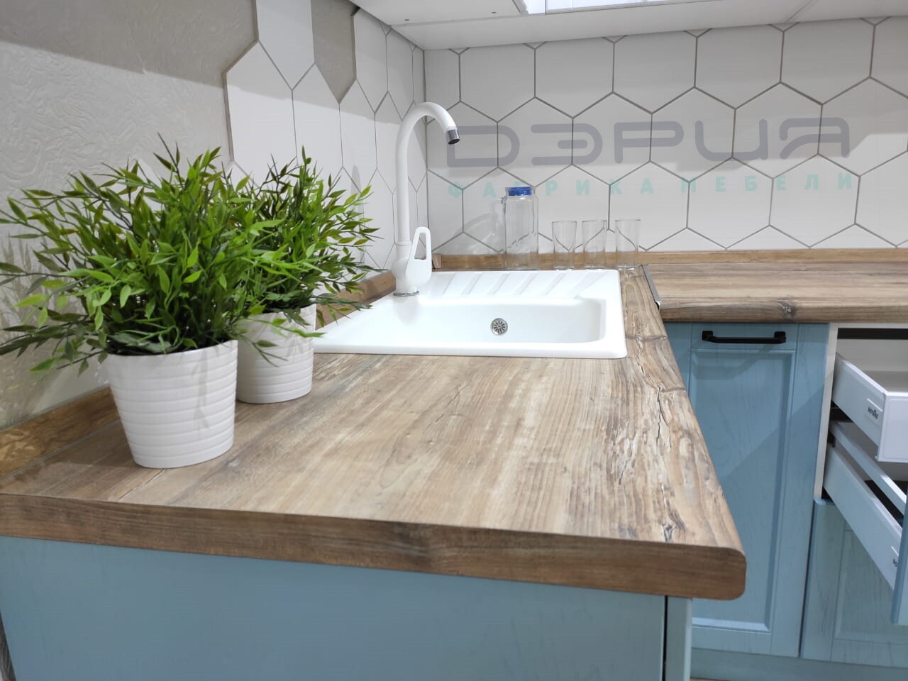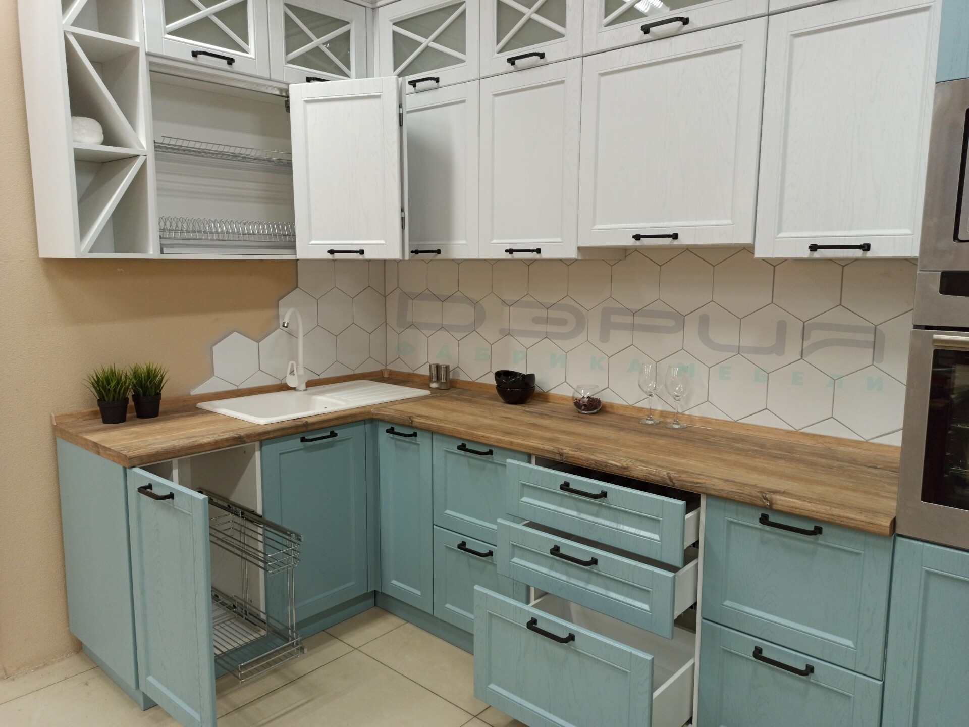 Интересный дизайн придает кухонному пространству индивидуальности. Кухня в таком стиле подойдет как для загородного дома, так и для городской квартиры. Необычное цветовое решение придает изюминку интерьеру.