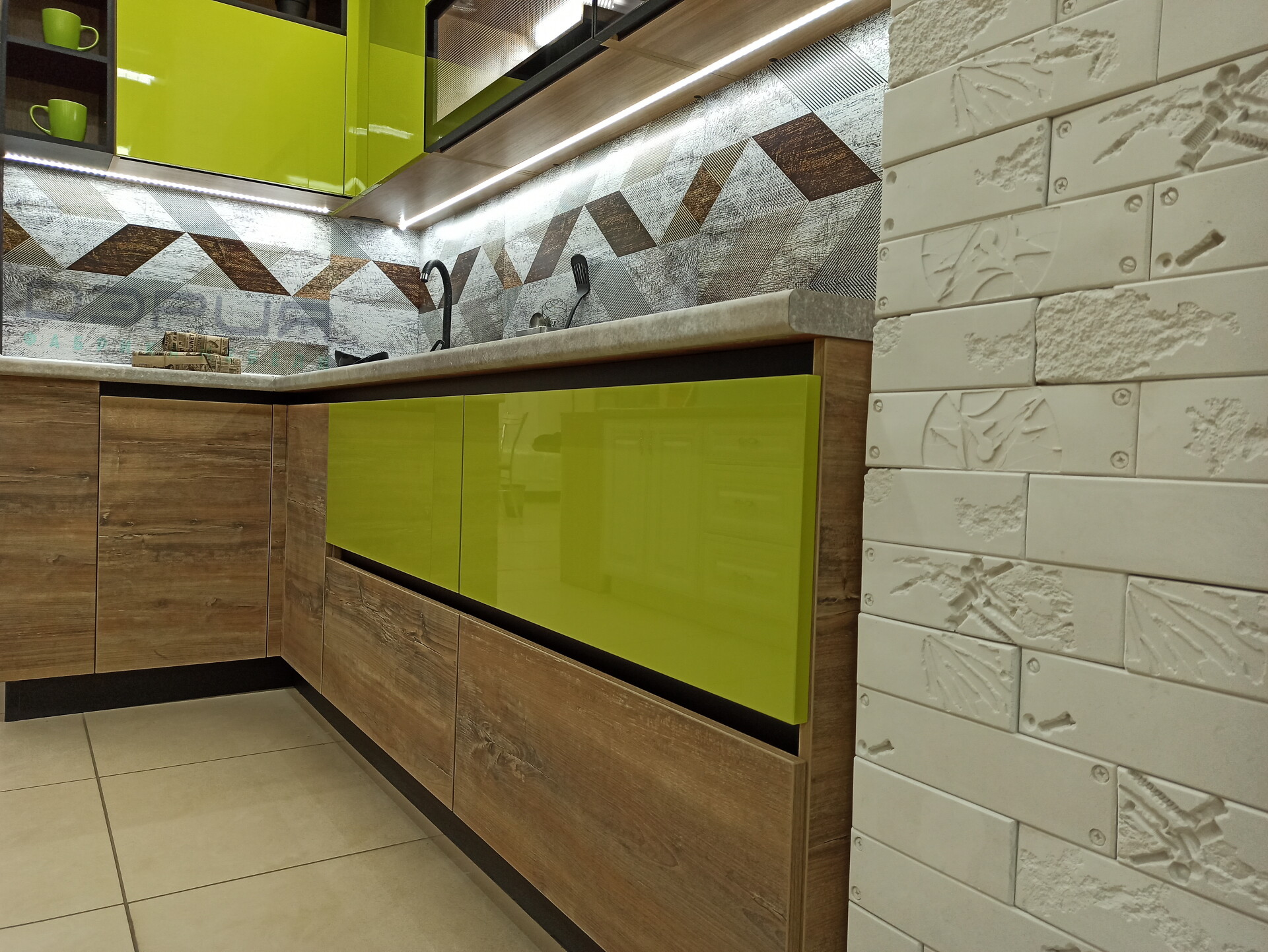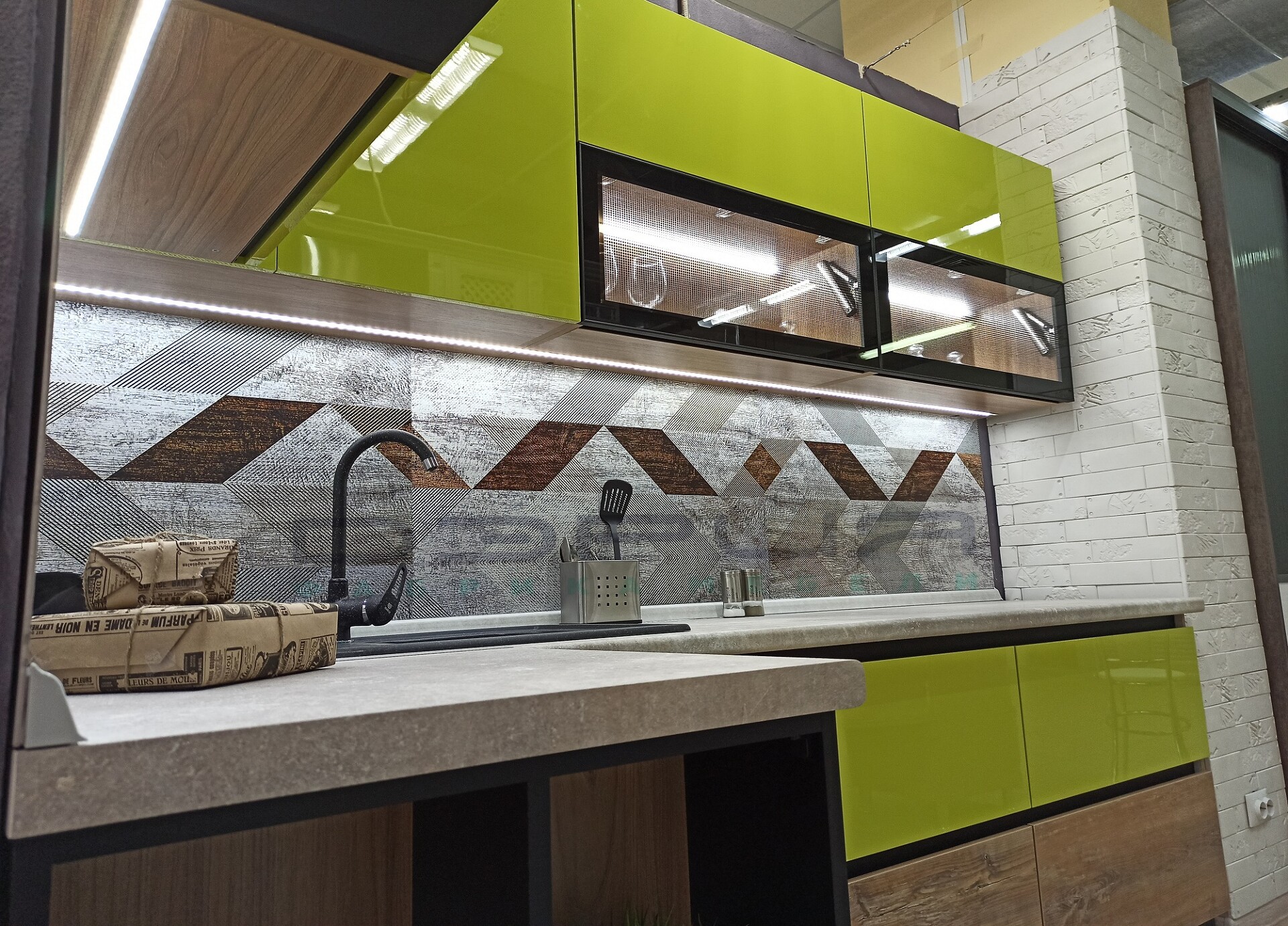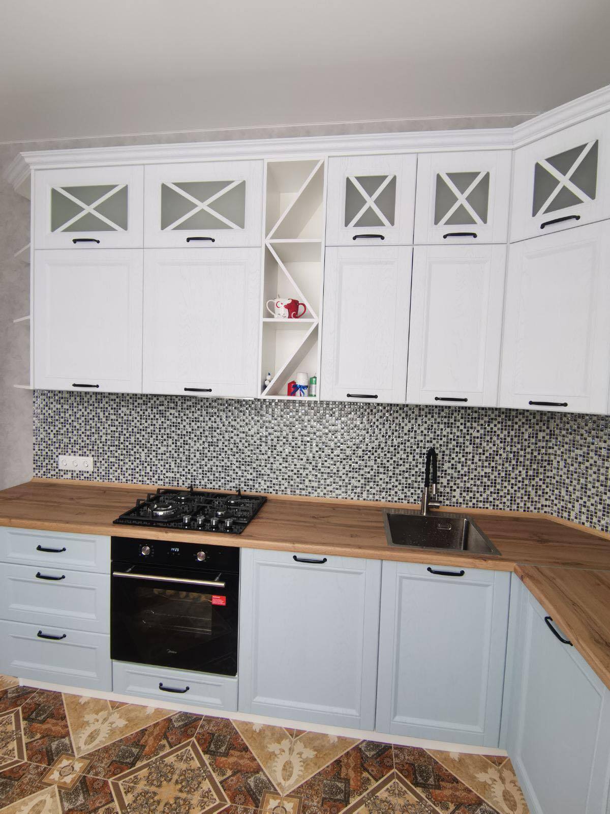 Интересный дизайн придает кухонному пространству индивидуальности. Кухня в таком стиле подойдет как для загородного дома, так и для городской квартиры. Необычное цветовое решение придает изюминку интерьеру.