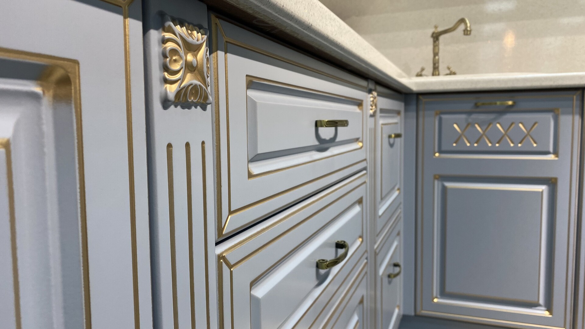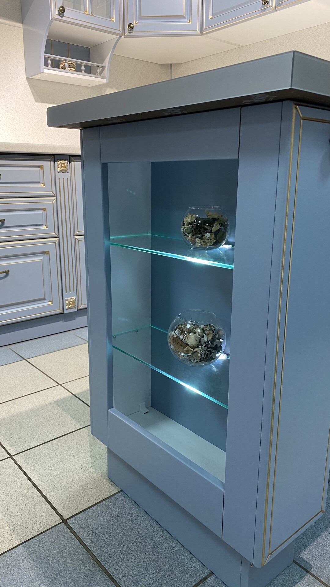 Декоративные элементы: Фрезеровка, открытая секция, карниз, витрины.